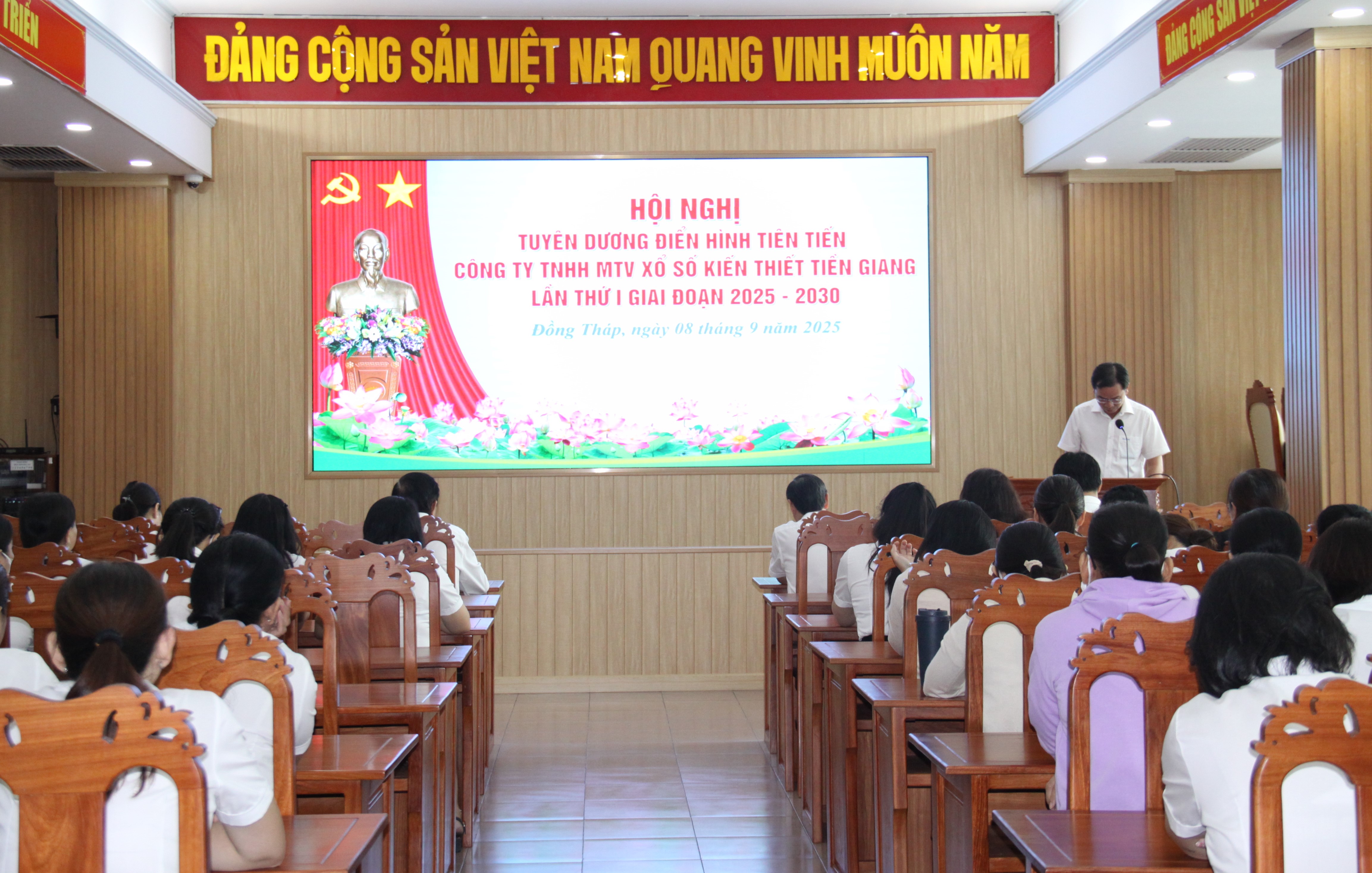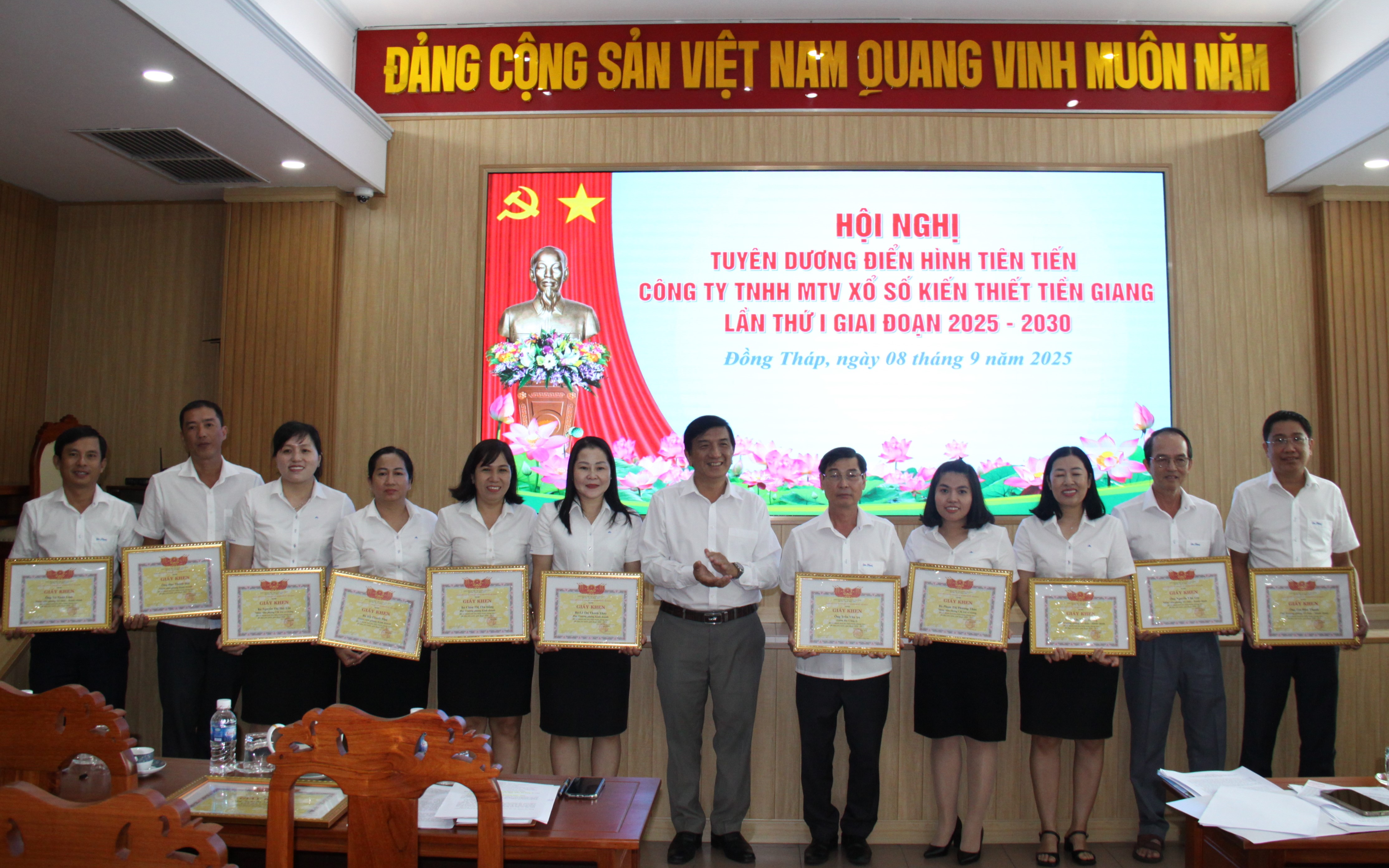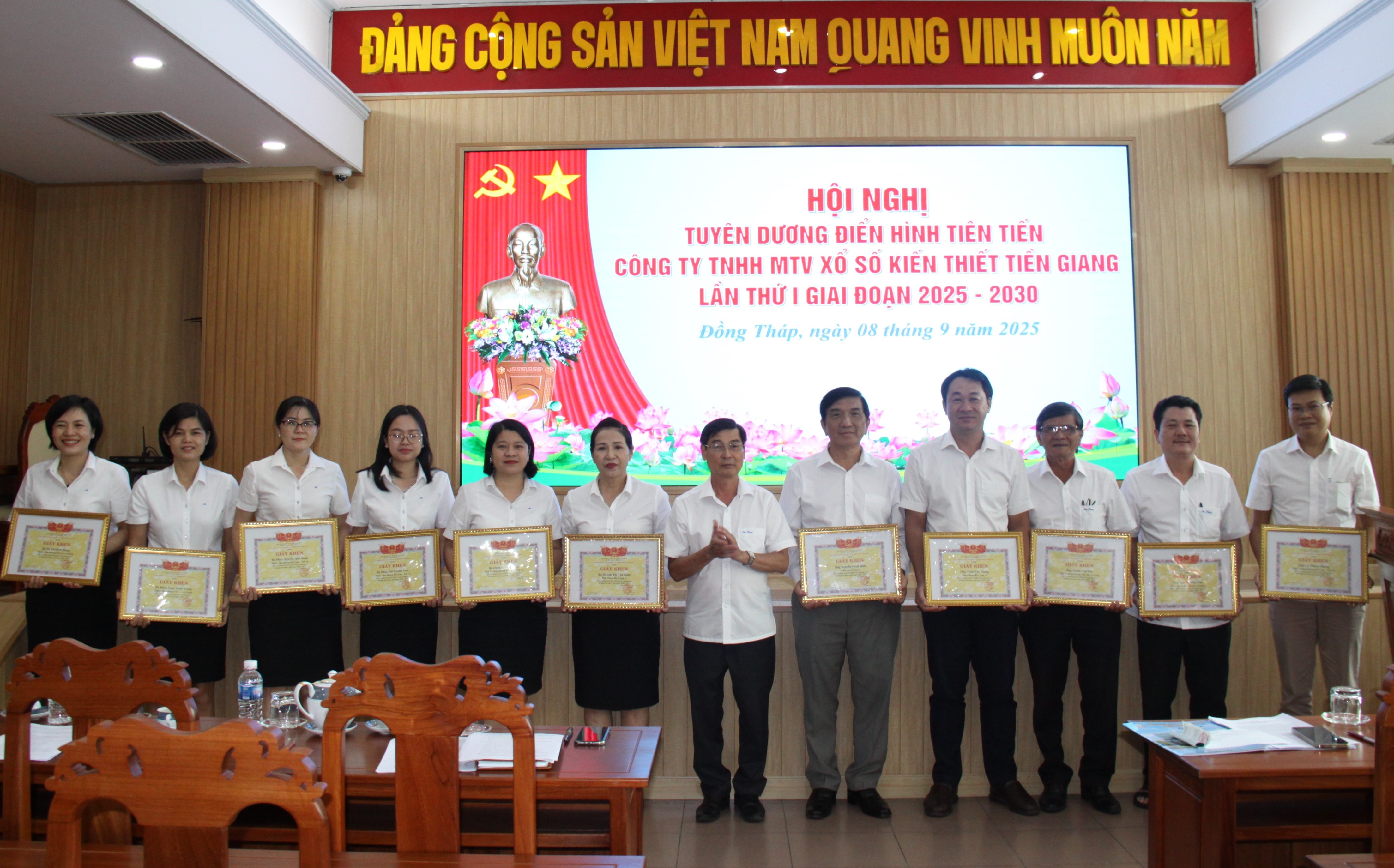 Sáng 8-9, Công ty TNHH MTV Xổ số kiến thiết Tiền Giang tổ chức Hội nghị tuyên dương điển hình tiên tiến lần thứ I, giai đoạn 2025 - 2030. Công ty TNHH MTV Xổ số kiến thiết Tiền Giang là doanh nghiệp do Nhà nước nắm giữ 100% vốn điều lệ, chủ sở hữu là UBND tỉnh. Với chức năng, nhiệm vụ là tổ chức in ấn và phát hành các loại hình vé số kiến thiết nhằm huy động tiền nhàn rỗi trong Nhân dân, đóng góp nguồn thu cho ngân sách địa phương để xây dựng các công trình giáo dục, y tế, phúc lợi công cộng và hỗ trợ công tác an sinh xã hội tại địa phương; đồng thời tạo việc làm cho người lao động nghèo.