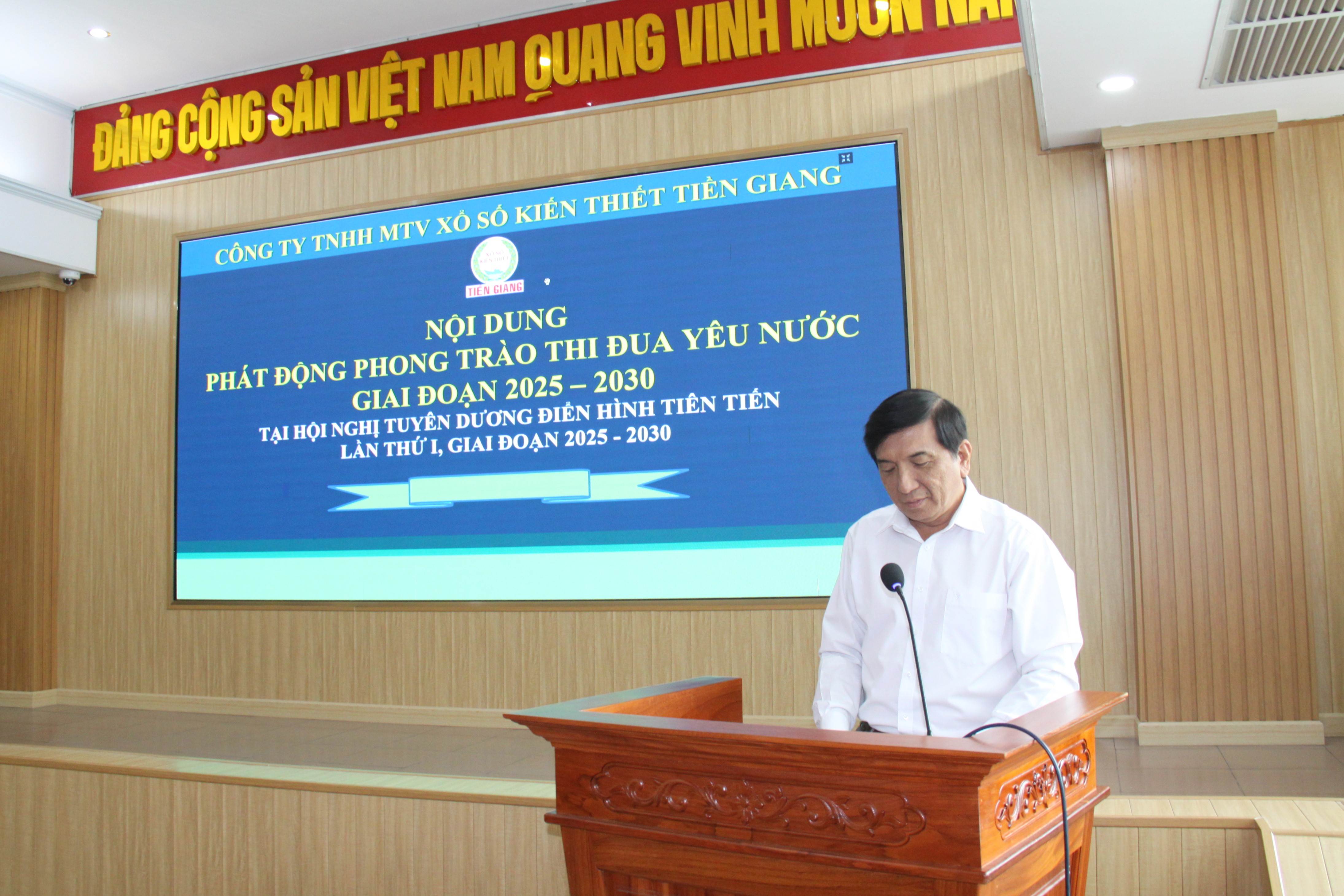 Tại hội nghị, Chủ tịch Công ty TNHH MTV Xổ số kiến thiết Tiền Giang Nguyễn Minh Hiếu đã phát động phong trào thi đua yêu nước giai đoạn 2025 - 2030 trong toàn công ty và đề nghị toàn thể cán bộ, người lao động nêu cao tinh thần thi đua yêu nước, ra sức phấn đấu, thực hiện thắng lợi kế hoạch phát triển kinh tế - xã hội 5 năm (2025 - 2030), tạo bước tiến mới, mạnh mẽ hơn về tốc độ phát triển kinh tế - xã hội, xây dựng quê hương ngày càng giàu đẹp, văn minh.
