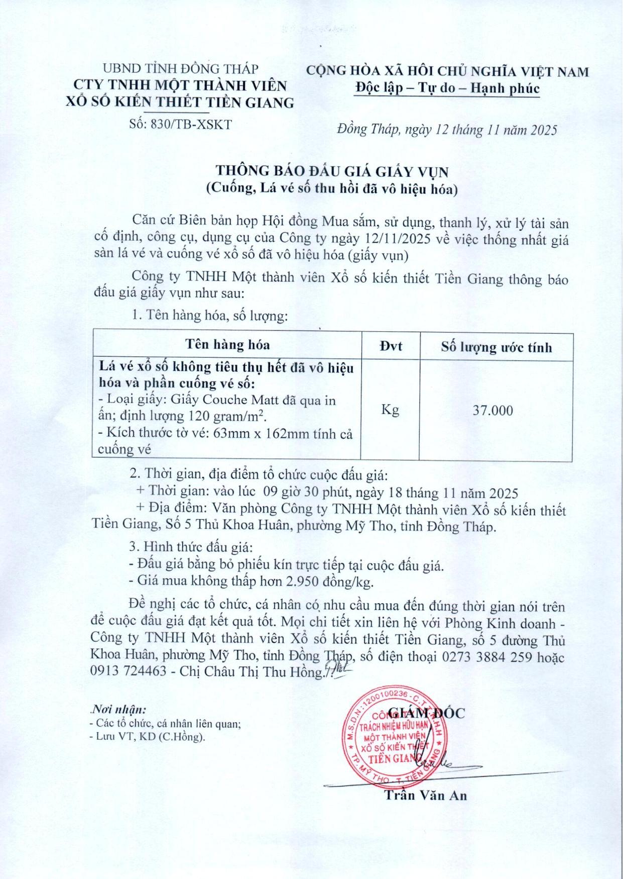 THÔNG BÁO ĐẤU GIÁ GIẤY VỤN